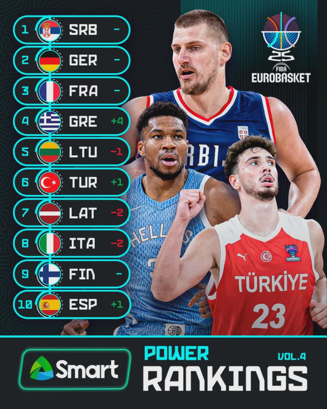希腊男篮高居战力榜第四,不过他们在热身赛输给法国15分,希腊的后卫线实力太差。上一届欧洲杯,希腊在1/4决赛被德国淘汰。当时字母哥场均29.3分8.8篮板4.7助攻1.5抢断0.8盖帽,成为欧洲杯得分王,并且入选最佳阵容。